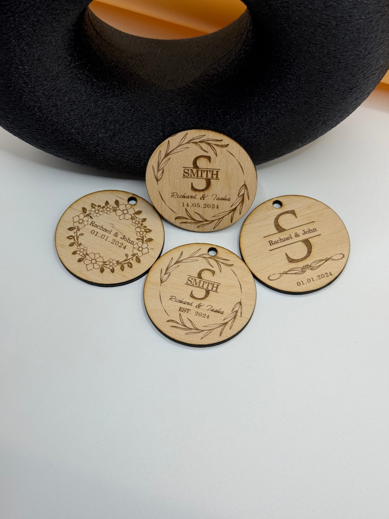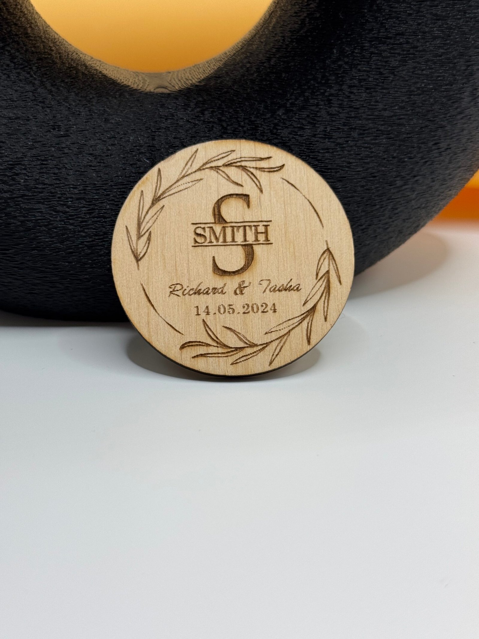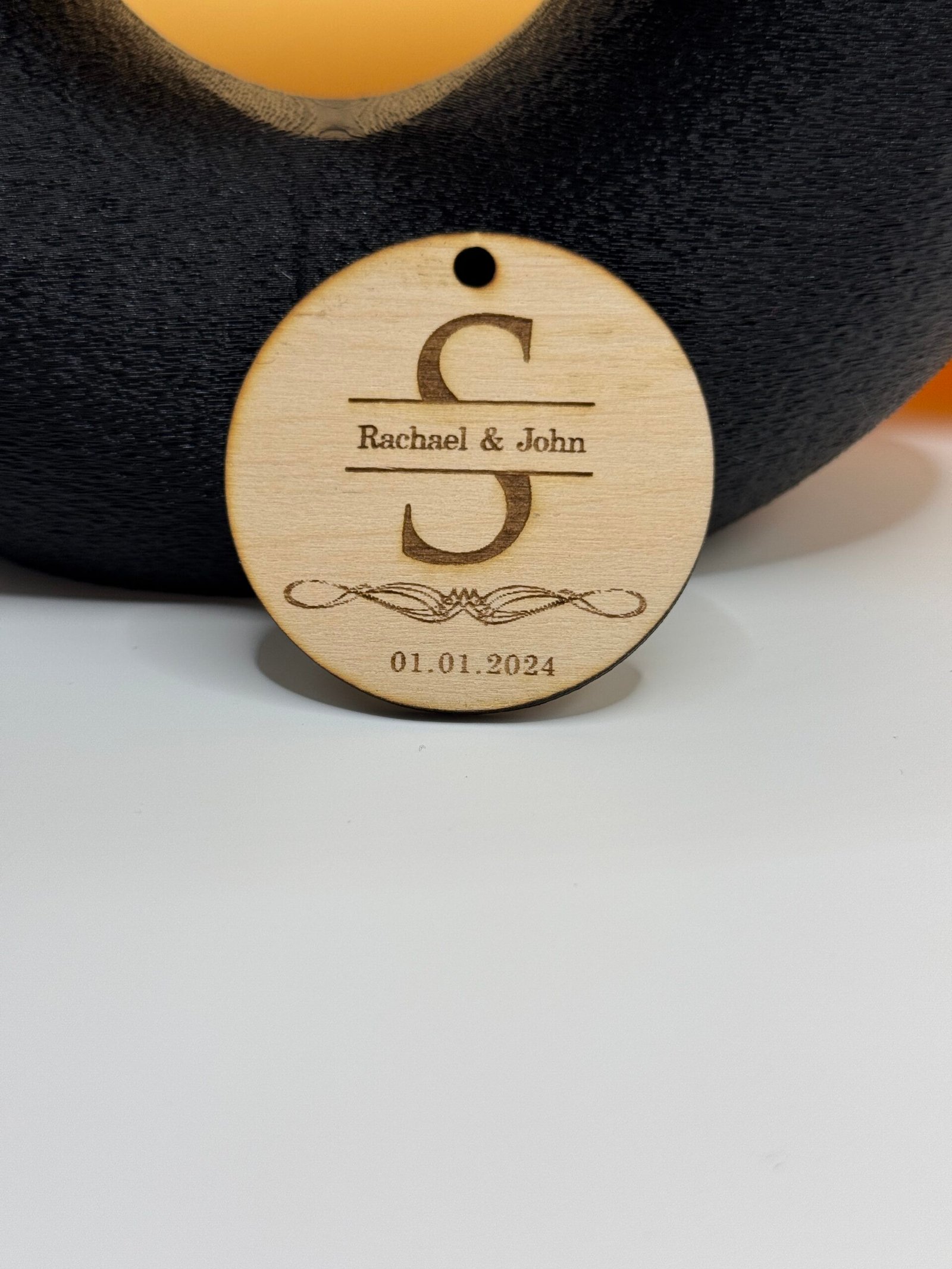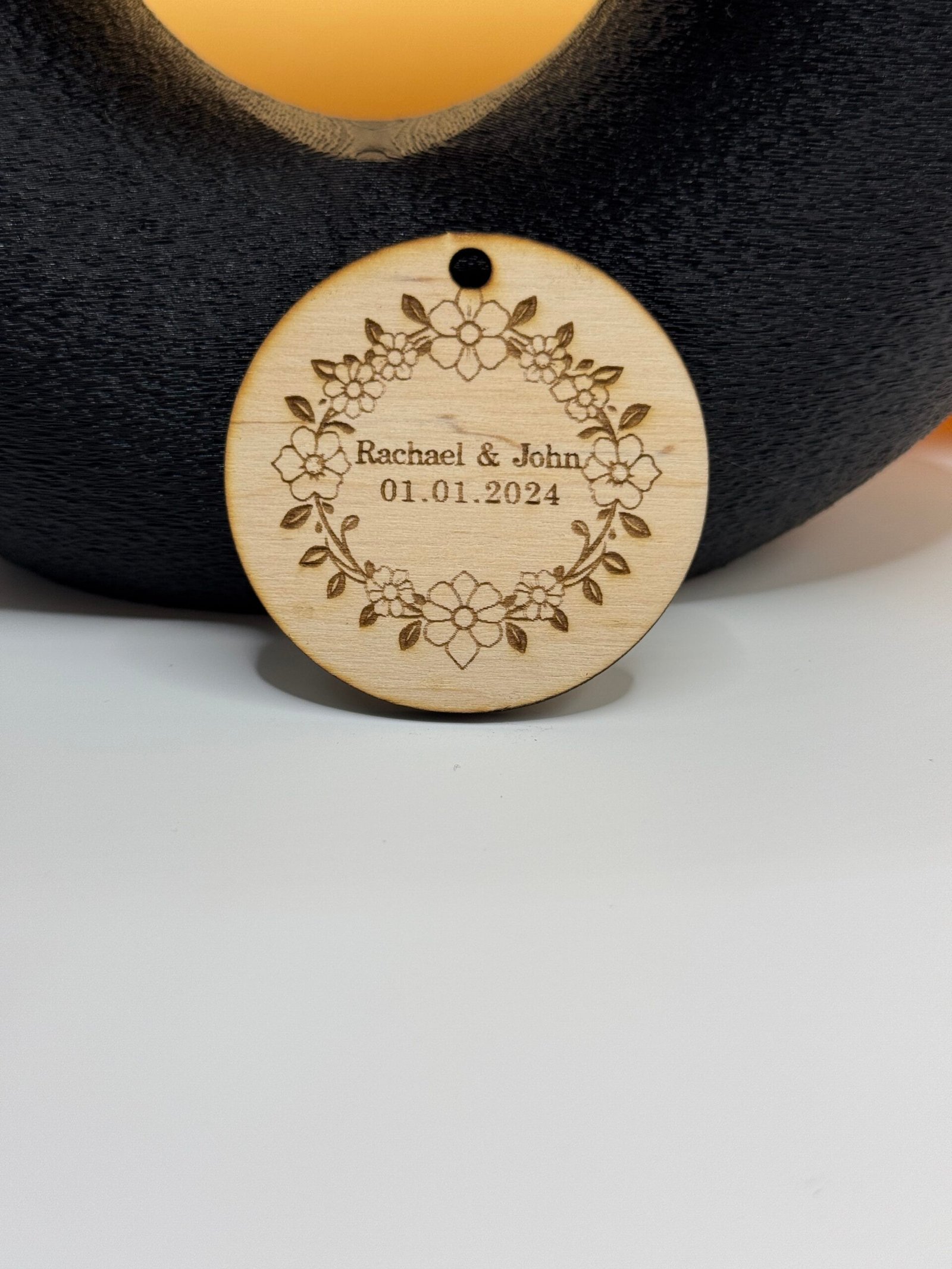 Celebrate love with this personalised wooden wedding ornament – custom engraved with names and date for a timeless keepsake. Perfect for weddings, anniversaries, or as a heartfelt gift.