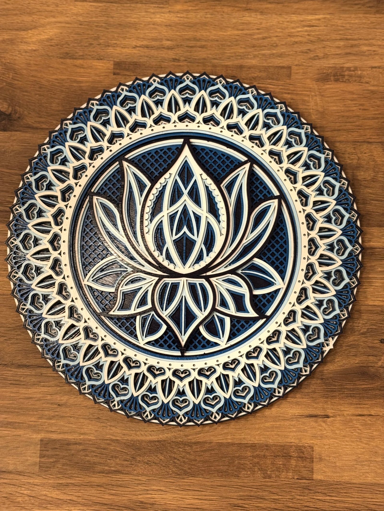 Bring calm, creativity, and intricate beauty into your space with this multi-layered laser-cut lotus mandala. Carefully crafted from quality wood, each mandala is built layer by layer with precision and love — perfect for home décor, gifts, or meditation spaces.