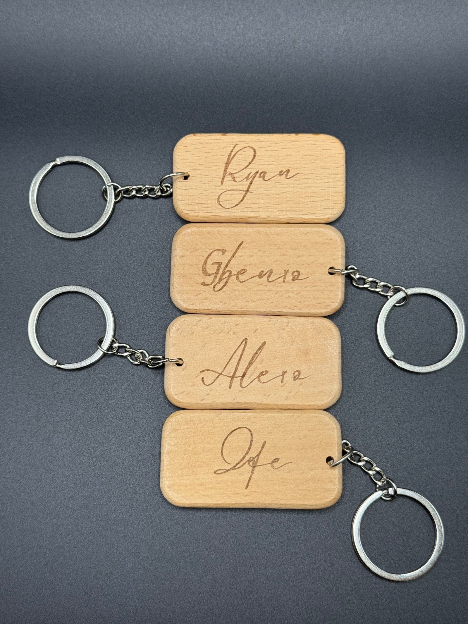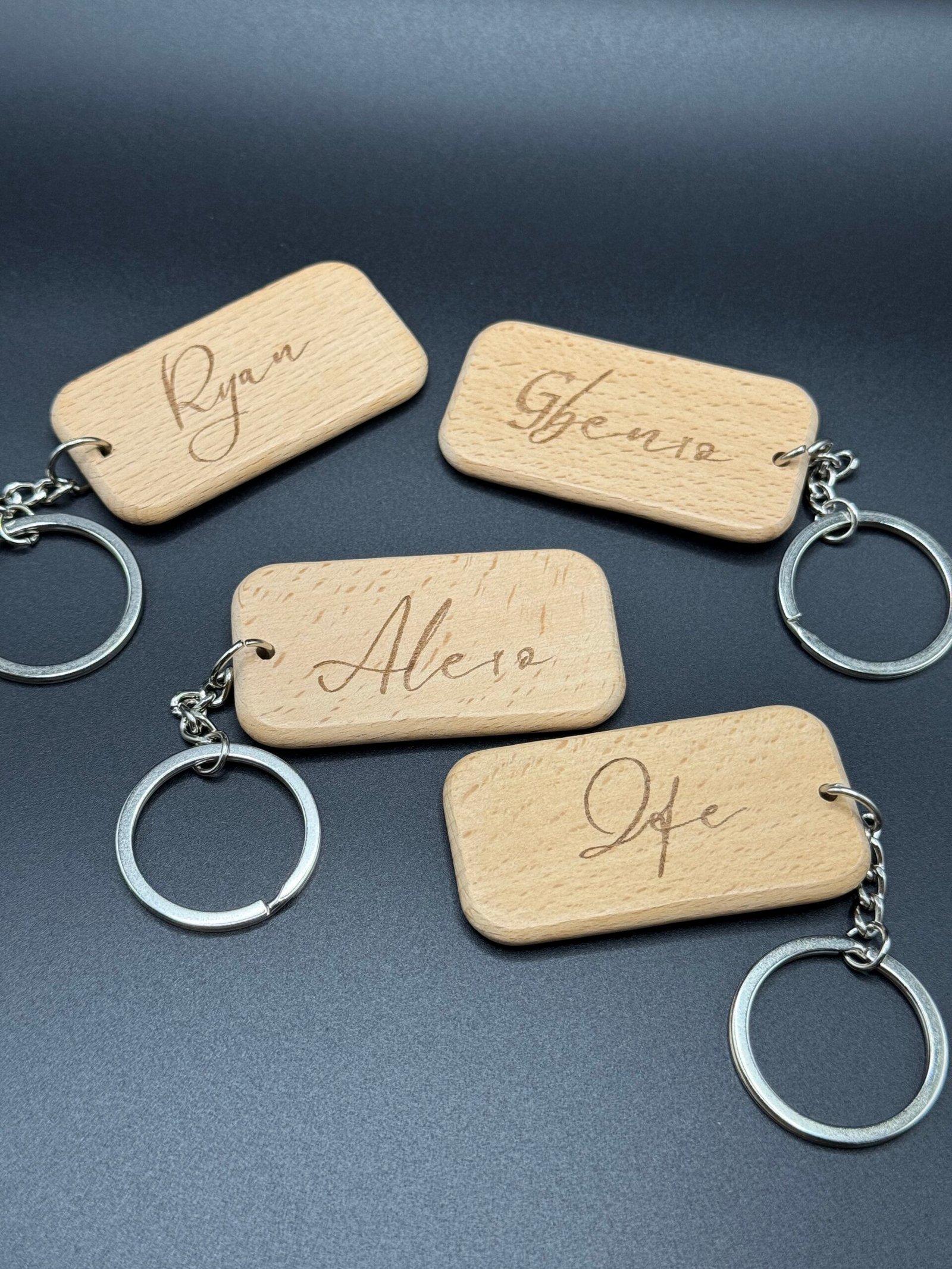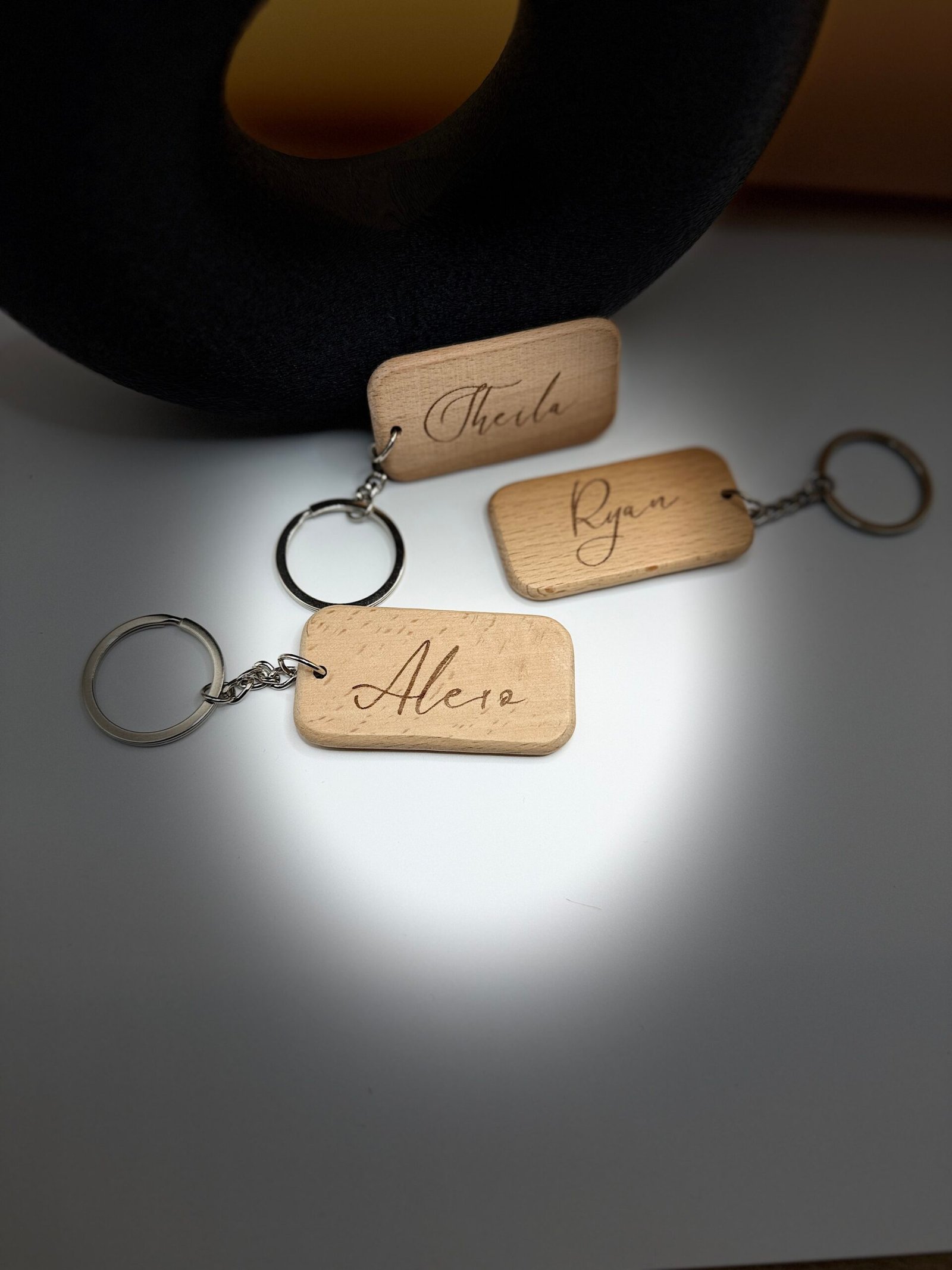 Each personalised keyring is made with high-quality, durable materials that ensure longevity and withstand daily wear and tear. The wood used in our keyrings is both lightweight and sturdy, making them an ideal choice for keeping your keys, bags, or backpacks organized. Our custom engraving service allows for precise detailing, giving your keyring a professional finish that highlights your chosen design or message.